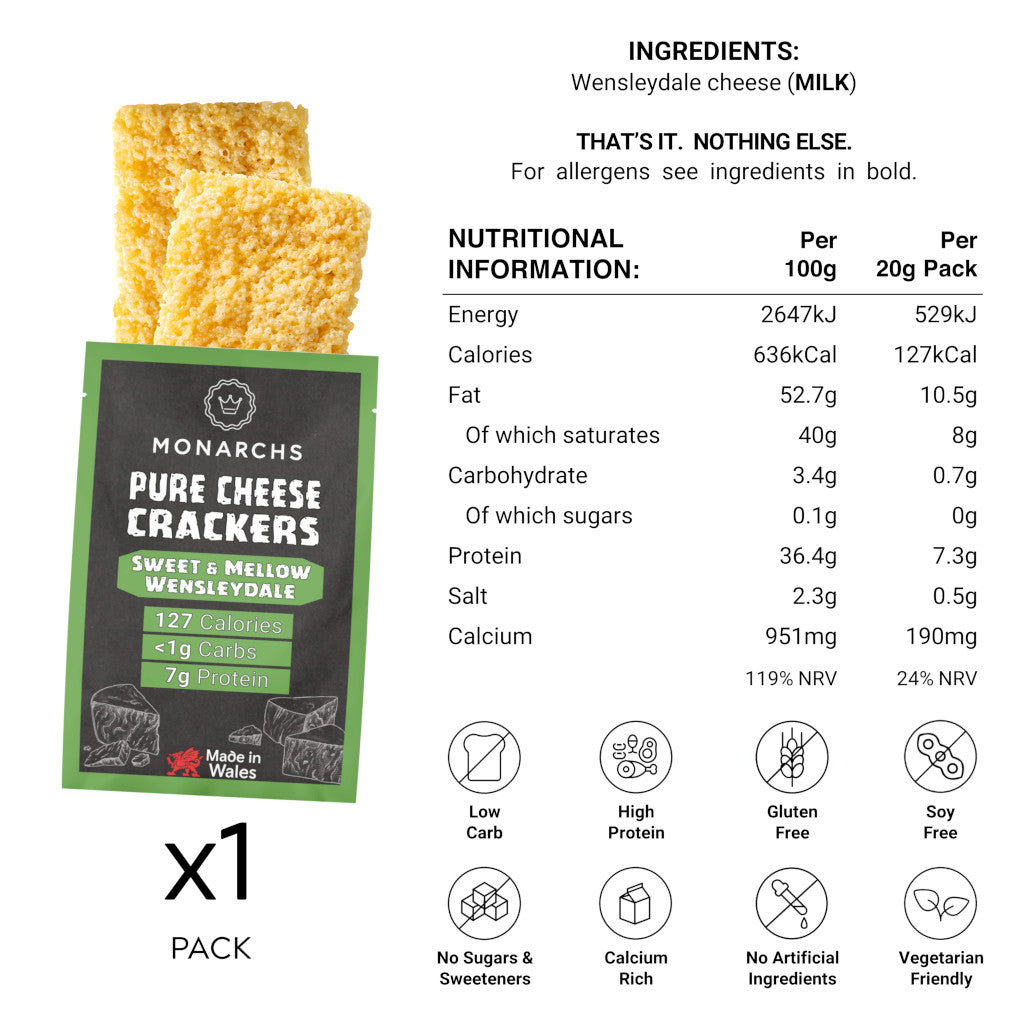 Packed with protein, low in carbs, MSG-free and gluten-free, Pure Cheese Crackers are as nutritious as they are delicious