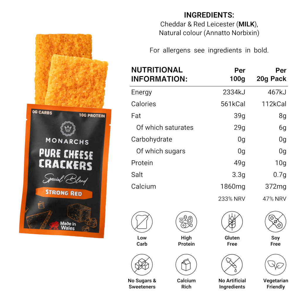 Each 20g packet contains two extra large and filling crunchy cheese crackers making it great for portion control and awesome for keto and for carnivores that need a grab and go low calorie treat.